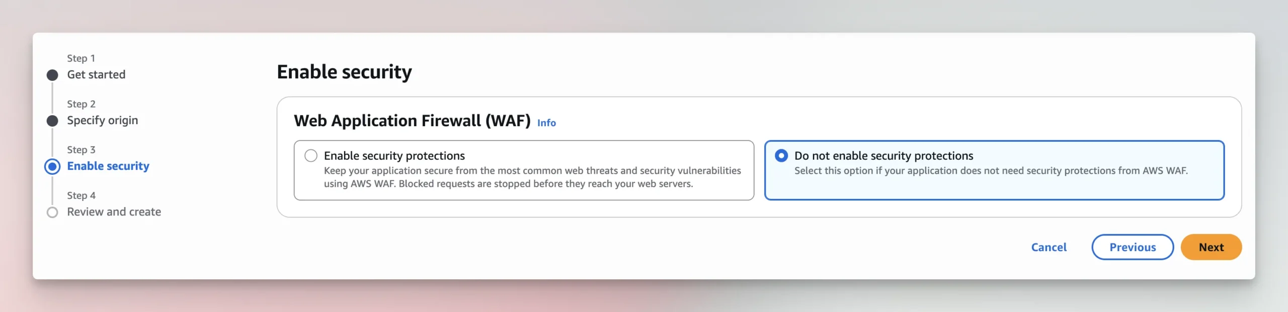 Do not enable security features